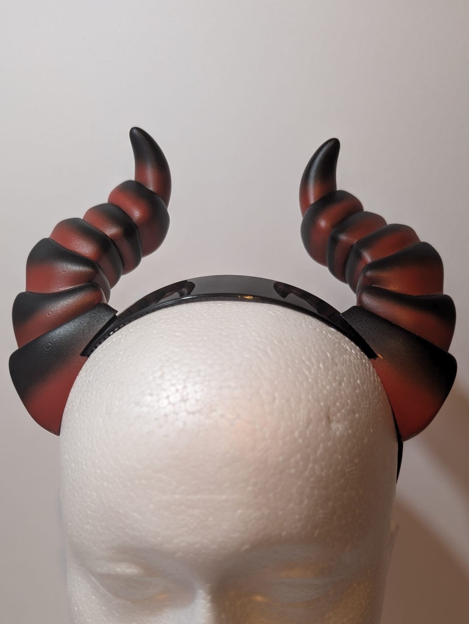 They can be supplied as just horns, horns with a headband as a kit, or can be painted and finished in any custom colours and attached on a head band as shown in the photos.