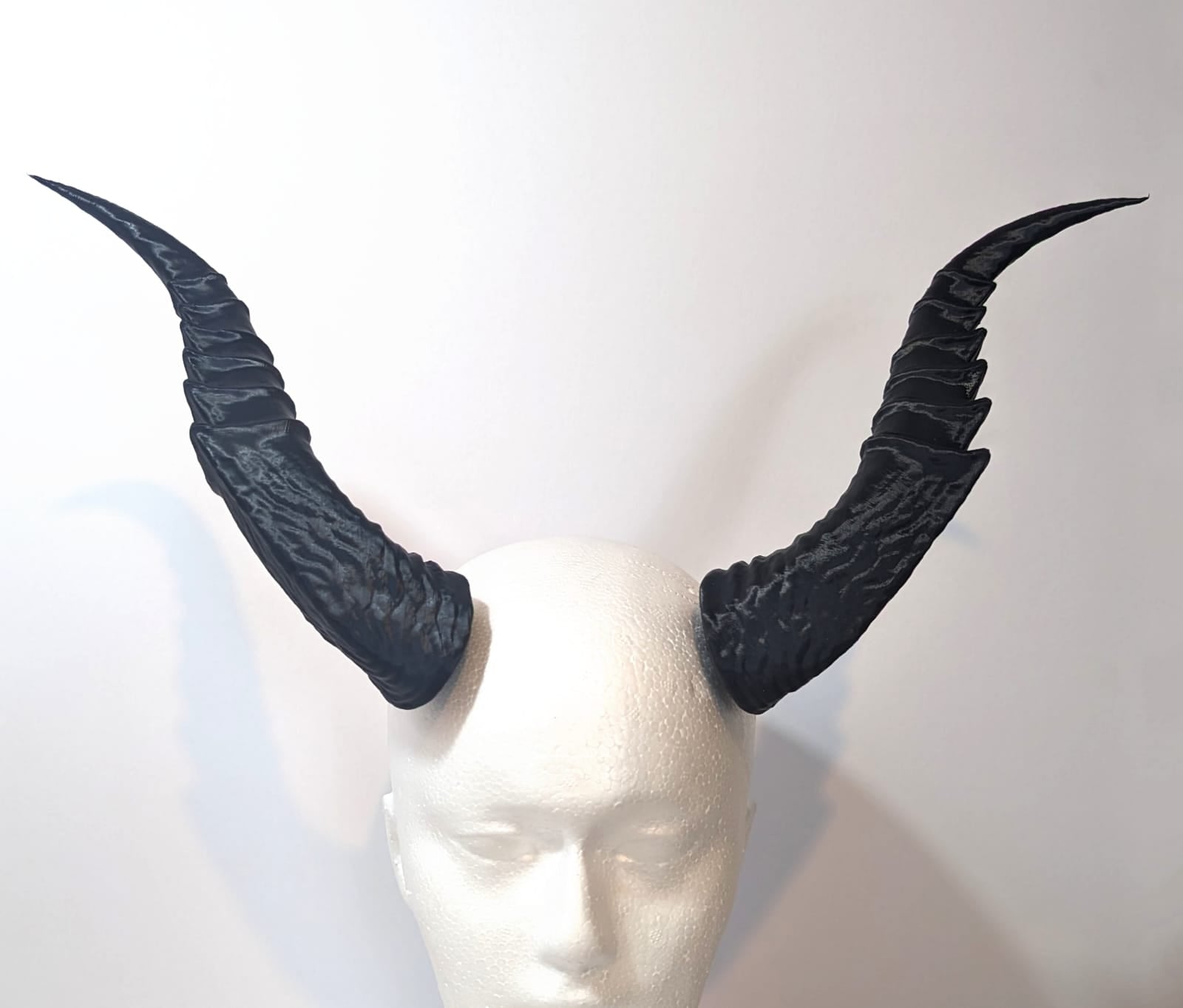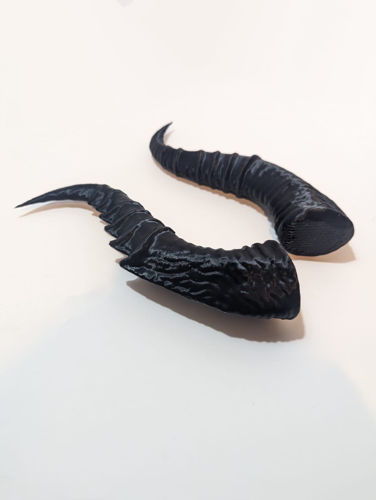 Here we have a set of large Demon horns (2 x horns) which are 3d printed in PLA+ biodegradable plastic (colour may vary from images). please get in touch if you have a specific colour preference.